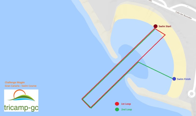 Schwimmstart ist an der Playa de los Amadores auf der Höhe des Amadores Beach Club. Die Schwimmstrecke ist eine ca. 450 m lange Wendepunktstrecke.