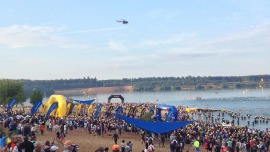 Startschuß! Die Anspannung weicht dem "Überlebenskampf". Die ersten Meter auf der Schwimmstrecke sind nichts für schwache Nerven. Man bekommt Füße ins Gesicht und in die Hüfte, Hände schlagen einem